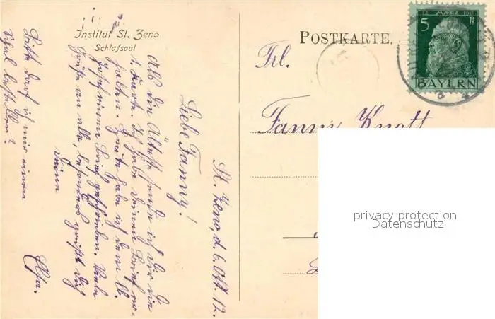 St_Zeno_Bad_Reichenhall Institut St Zeno der Englischen Fraeulein Schlafsaal St_Zeno_Bad_Reichenhall postalisch gelaufen 1912 Erhaltung siehe scans [FriedD77] Frierer