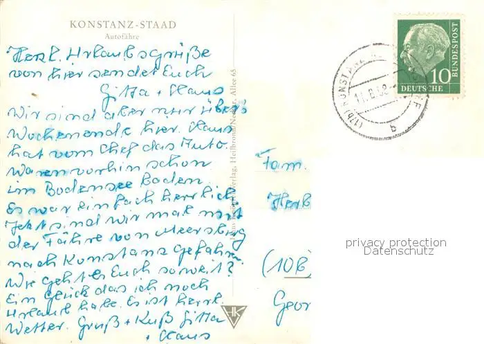 Staad_Konstanz Autofaehre Bodensee Staad_Konstanz postalisch gelaufen 1958 Erhaltung siehe scans [FriedD77] Frierer