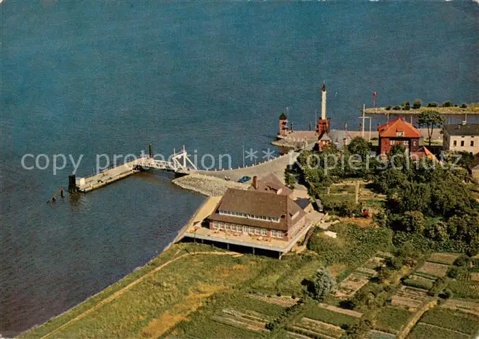 AK / Ansichtskarte Stadersand Gaststaette Elbkate Schiffsanleger Fliegeraufnahme Stadersand