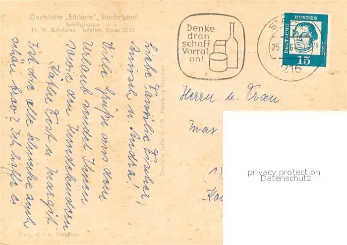 Stadersand Gaststaette Elbkate Schiffsanleger Fliegeraufnahme Stadersand postalisch gelaufen 1964 Erhaltung siehe scans [WerneD78] WernPID7