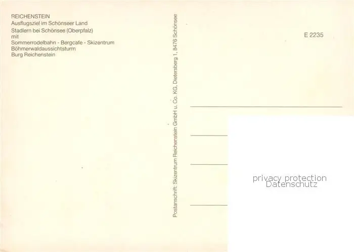 Stadlern__Schoensee_Oberpfalz Bergcafe am Reichenstein postalisch nicht gelaufen nach 1965 Erhaltung siehe scans [WerneD78] WernPID7