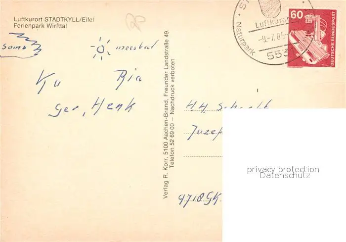 Stadtkyll Ferienpark Wirfttal Stadtkyll postalisch gelaufen 1985 Erhaltung siehe scans [KathaD81] Kathoren