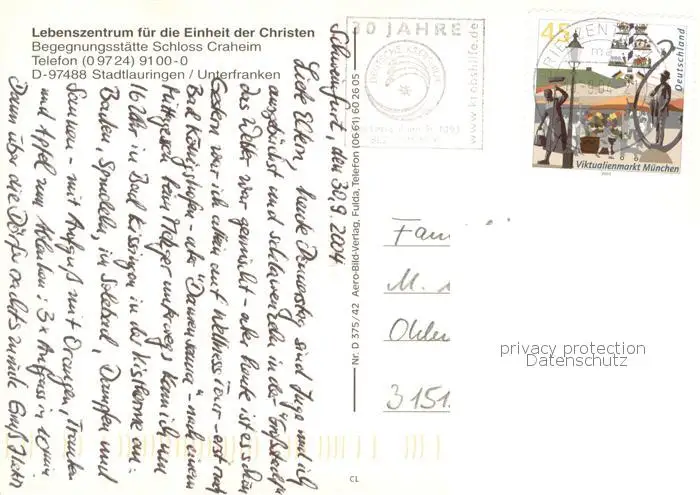 Stadtlauringen Fliegeraufnahme Begegnungststaette Schloss Craheim Stadtlauringen postalisch gelaufen 2004 Erhaltung siehe scans [LiesaD40] LiesID40