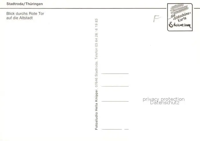 Stadtroda Blick durchs Rote Tor Altstadt Stadtroda postalisch nicht gelaufen nach 1965 Erhaltung siehe scans [KathaD81] Kathoren