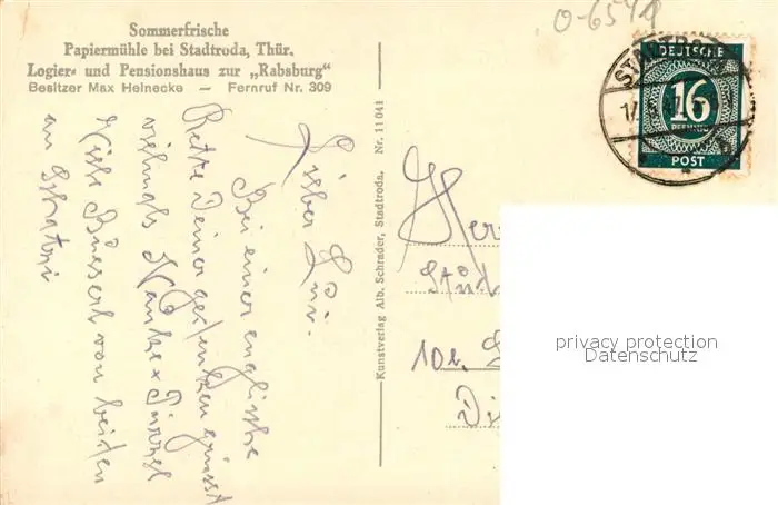 Stadtroda Papiermuehle im Zeitzgrund Thueringer Wald Stadtroda postalisch gelaufen 1947 Erhaltung siehe scans [FriedD77] Frierer