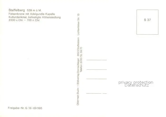 Staffelberg Felsenkrone Adelgundis-Kapelle Fliegeraufnahme Staffelberg postalisch nicht gelaufen nach 1965 Erhaltung siehe scans [PaolaD17] PaolPID1