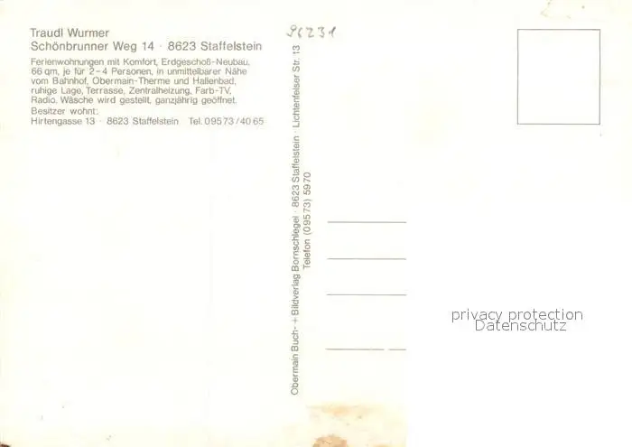 Staffelstein Ferienwohnungen Traudl Wurmer Zimmer Stube Kueche Staffelstein postalisch nicht gelaufen nach 1965 Erhaltung siehe scans [WerneD78] WernPID7