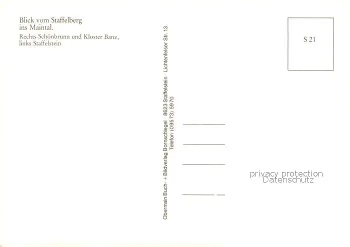 Staffelstein Fliegeraufnahme mit Schoenbrunn und Kloster Banz Portrait Viktor von Scheffel Staffelstein postalisch nicht gelaufen nach 1965 Erhaltung siehe scans [WerneD78] WernPID7