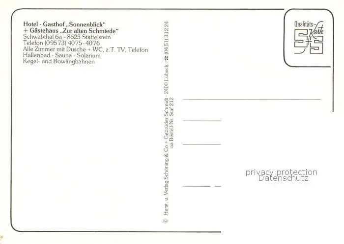 Staffelstein Hotel Gasthof Sonnenblick Staffelstein postalisch nicht gelaufen nach 1965 Erhaltung siehe scans [WerneD78] WernPID7