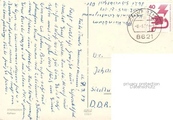 Staffelstein Rathaus Staffelstein postalisch gelaufen 1977 Erhaltung siehe scans [WerneD78] WernPID7