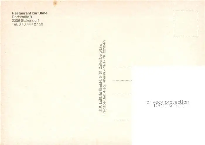 Stakendorf Restaurant zur Ulme Stakendorf postalisch nicht gelaufen nach 1965 Erhaltung siehe scans [FriedD77] Frierer
