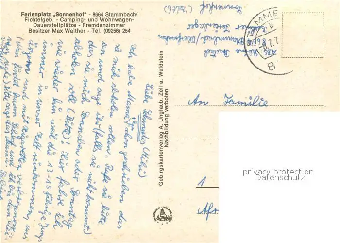 Stammbach Ferienplatz Sonnenhof im Fichtelgebirge Campingplatz Panorama Stammbach postalisch gelaufen nach 1965 Erhaltung siehe scans [FriedD77] Frierer