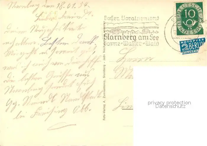 Starnbergersee mit Schloss und alter Kirche Starnbergersee postalisch gelaufen 1954 Erhaltung siehe scans [WerneD78] WernPID7