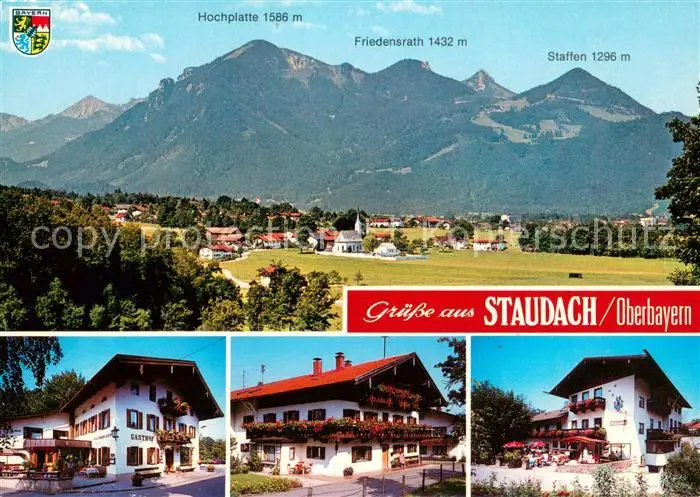 AK / Ansichtskarte Staudach_Grassau Panorama mit Hochplatte Friedensrath und Staffen Gasthaeuser Staudach Grassau