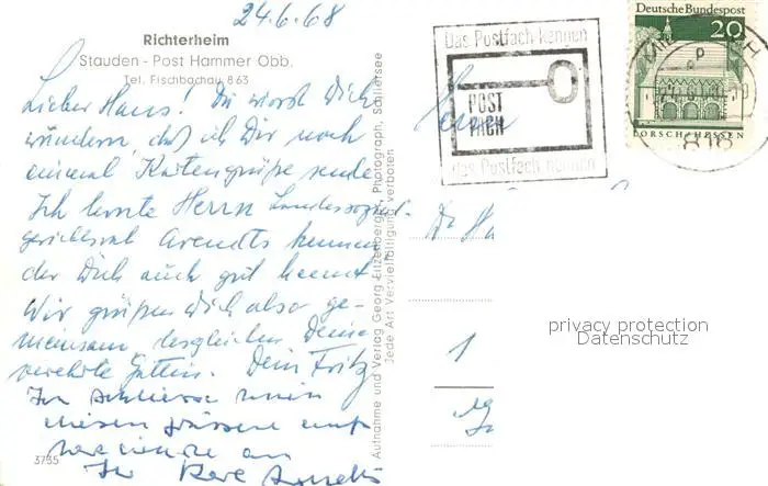 Stauden_Fischbachau Richterheim Garten Alpen Stauden Fischbachau postalisch gelaufen 1968 Erhaltung siehe scans [FriedD77] Frierer