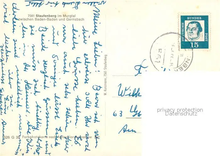 Staufenberg Gernsbach Kategorie Alte Ansichtskarten Postkarten bx57292 Staufenberg_Gernsbach Panorama Staufenberg Gernsbach postalisch gelaufen 1965 Erhaltung siehe scans [WerneD78]