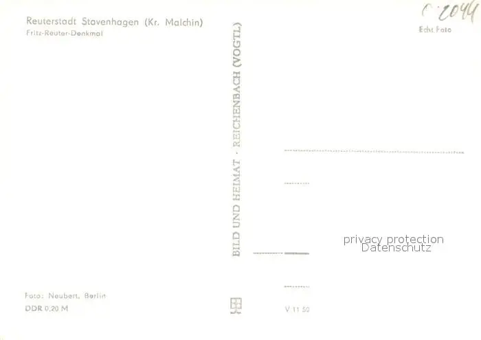 Stavenhagen Fritz Reuter Denkmal Stavenhagen postalisch nicht gelaufen 1977 Erhaltung siehe scans [FriedD77] Frierer