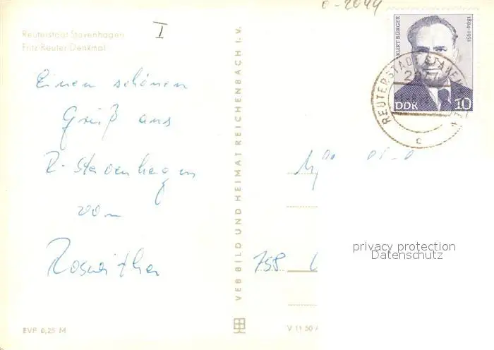 Stavenhagen Fritz Reuter Denkmal Stavenhagen postalisch gelaufen 1974 Erhaltung siehe scans [FriedD77] Frierer