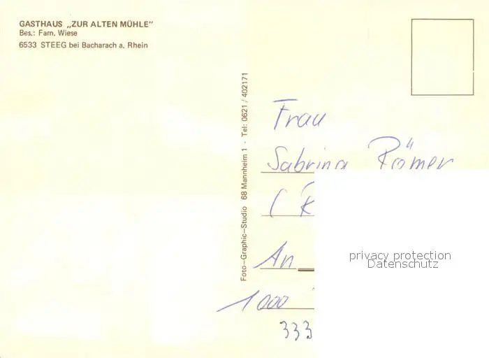 Steeg_Bacharach Gasthaus zur Alten Muehle Gastraeume Zimmer Steeg Bacharach postalisch nicht gelaufen nach 1965 Erhaltung siehe scans [WerneD78] WernPID7