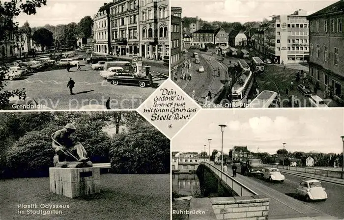 AK / Ansichtskarte Steele_Ruhr Grendplatz Kaiser Otto Platz Ruhrbruecke Plastik Odysseus im Stadtgarten Steele_Ruhr
