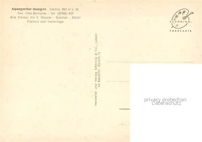 Steibis Alpengasthof Hochgrat Restaurant Steibis postalisch nicht gelaufen nach 1965 Erhaltung siehe scans [FriedD77] Frierer