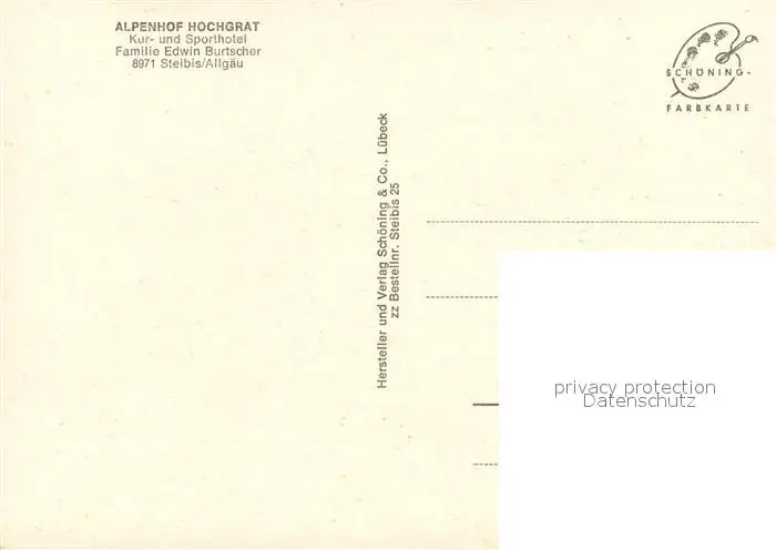 Steibis Alpenhof Hochgrat Kur- und Sporthotel Steibis postalisch nicht gelaufen nach 1965 Erhaltung siehe scans [FriedD77] Frierer
