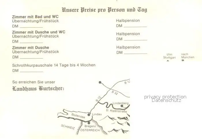 Steibis Landhaus Burtscher Gaestehaus Pension Steibis postalisch nicht gelaufen nach 1965 Werbekarte (keine Postkarte) Erhaltung siehe scans [FriedD77] Werbekarte (keine Postkarte) Frierer
