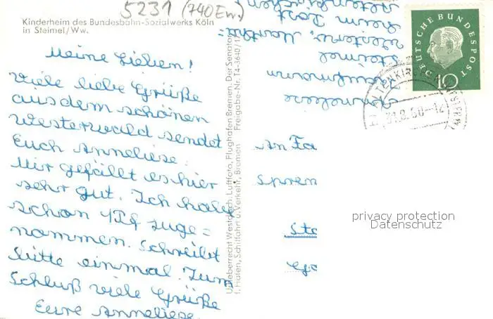 Steimel_Altenkirchen_Westerwald Kinderheim des Bundesbahn Sozialwerks Koeln Steimel_Altenkirchen postalisch gelaufen 1960 Fliegeraufnahme Erhaltung siehe scans [FriedD77] Fliegeraufnahme Frierer
