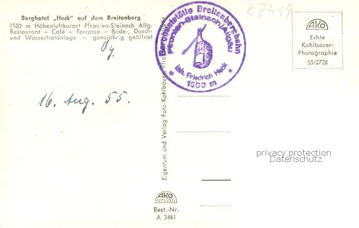 Steinach_Pfronten Berghotel Heck auf dem Breitenberg Steinach Pfronten postalisch nicht gelaufen nach 1965 Erhaltung siehe scans [FriedD77] Frierer