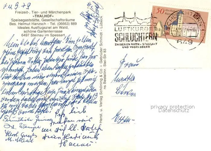 Steinau_Spessart Freizeitpark Tierpark Maerchenpark Gaststaette Thalhof Steinau Spessart postalisch gelaufen 1979 Erhaltung siehe scans [FriedD77] Frierer