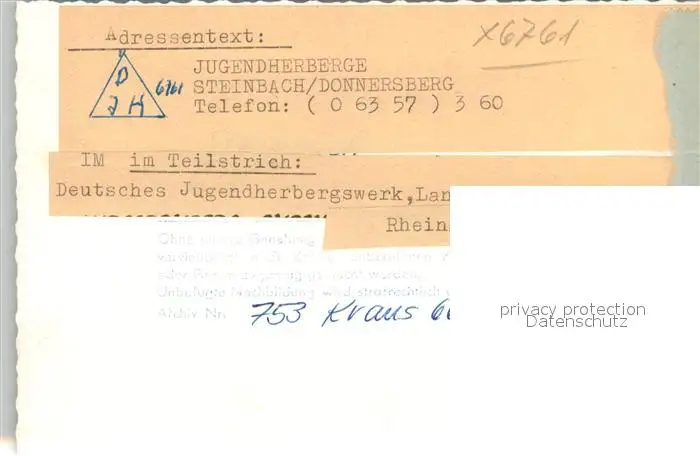 Steinbach_Donnersberg Jugendherberge Steinbach Donnersberg postalisch nicht gelaufen 1966 Verlagsrohabzug (keine Postkartenrueckseite) Erhaltung siehe scans [NatalD47] Verlagsrohabzug (keine Postkartenrueckseite) NataID47