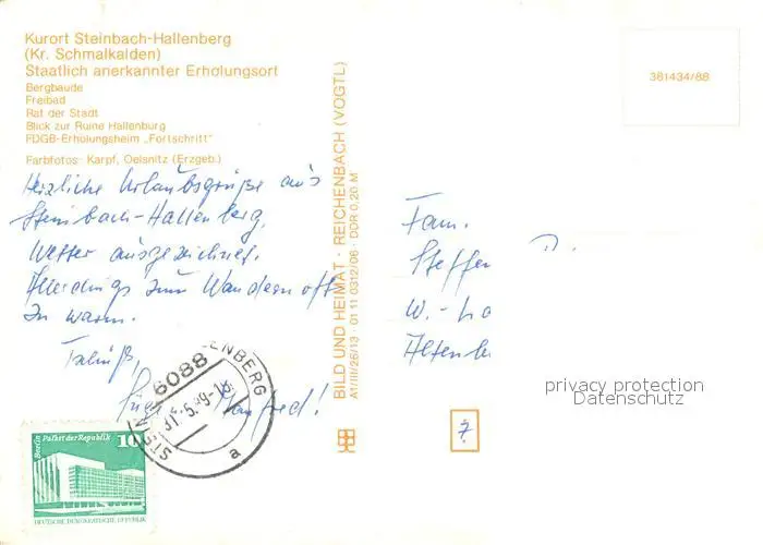 Steinbach_Hallenberg Bergbaude Freibad Rat der Stadt Ruine Hallenburg FDGB Erholungsheim Fortschritt Steinbach_Hallenberg postalisch nicht gelaufen nach 1965 Erhaltung siehe scans [WerneD78] WernPID7