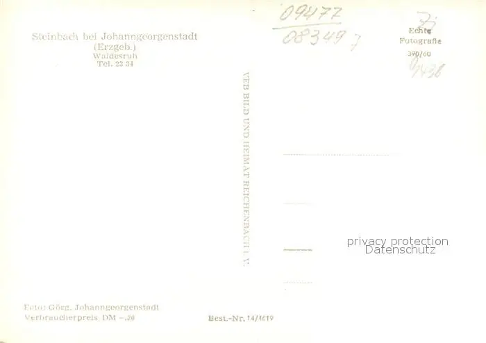 Steinbach_Johanngeorgenstadt Gasthof Waldesruh Steinbach postalisch nicht gelaufen 1960 Erhaltung siehe scans [FriedD77] Frierer