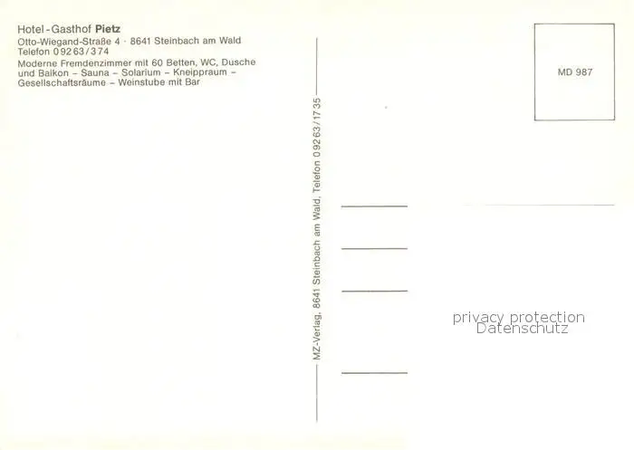 Steinbach_Kronach Hotel-Gasthof Pietz Steinbach Kronach postalisch nicht gelaufen nach 1965 Erhaltung siehe scans [LiesaD40] LiesID40