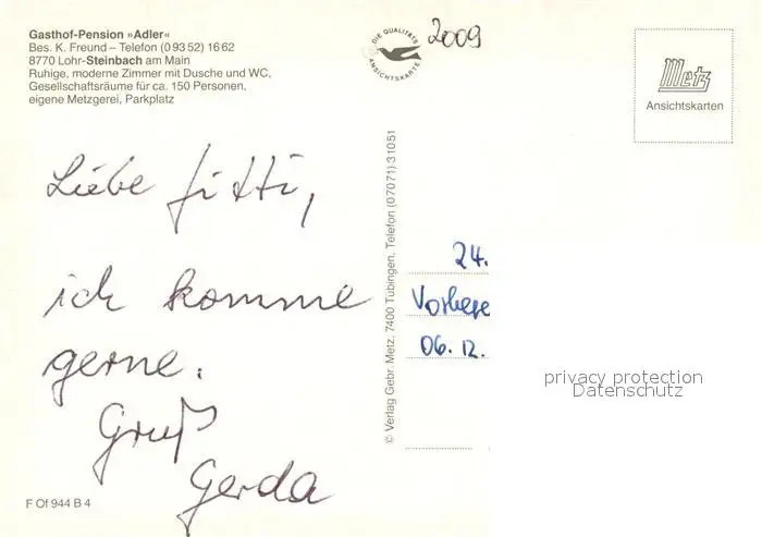 Steinbach_Lohr_Main Gasthof Pension Adler Steinbach_Lohr_Main postalisch nicht gelaufen 2009 Erhaltung siehe scans [WerneD78] WernPID7