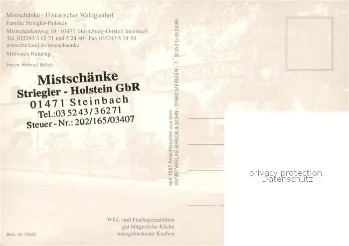 Steinbach_Moritzburg Historischer Waldgasthof Mistschaenke Terrasse Speisesaal Steinbach Moritzburg postalisch nicht gelaufen nach 1965 Erhaltung siehe scans [WerneD78] WernPID7