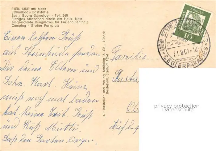 Steinhude_Wunstorf Strandbad Bungalows am Steinhuder Meer postalisch gelaufen 1961 Erhaltung siehe scans [FriedD77] Frierer