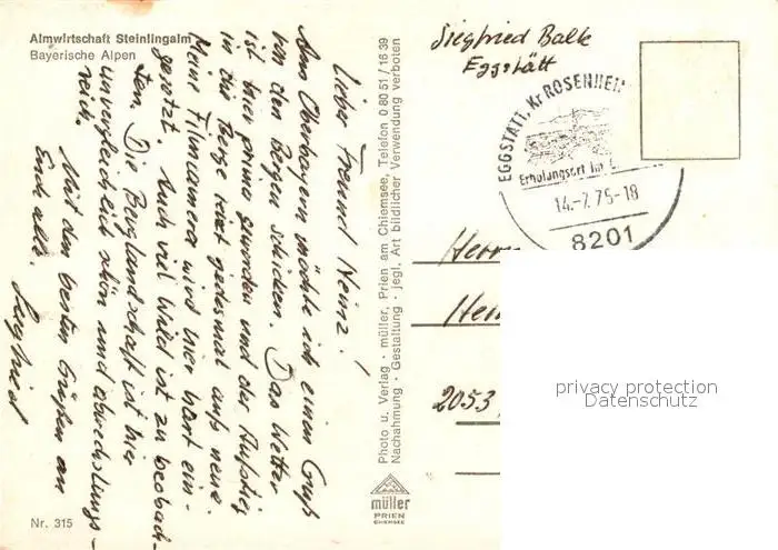 Steinlingalm Almwirtschaft Steinlingalm postalisch gelaufen 1975 Erhaltung siehe scans [KathaD81] Kathoren