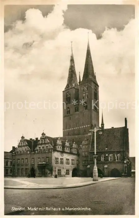 AK / Ansichtskarte Stendal Markt mit Rathaus Marienkirche Stendal