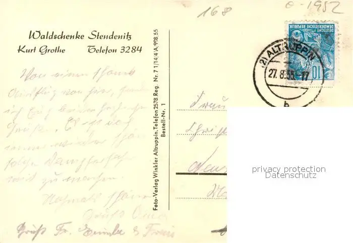 Stendenitz Waldschenke Stendenitz postalisch gelaufen 1955 Erhaltung siehe scans [FriedD77] Frierer