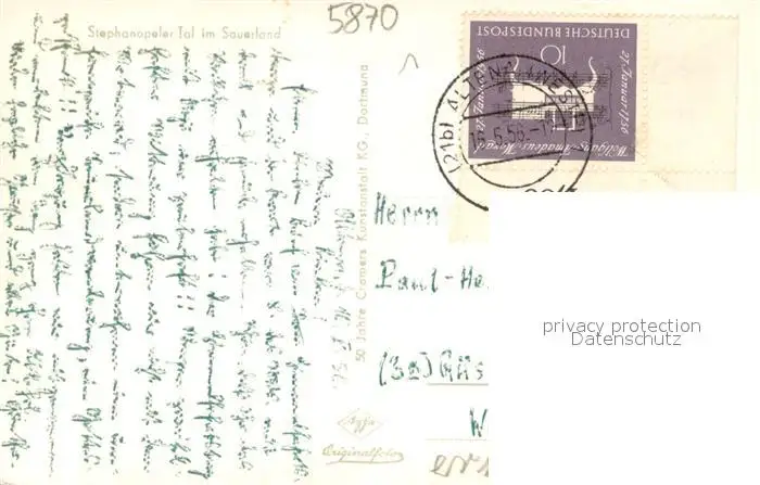Stephanopel_Hemer Stephanopeler Tal Sauerland postalisch gelaufen 1956 Erhaltung siehe scans [LiesaD40] LiesID40
