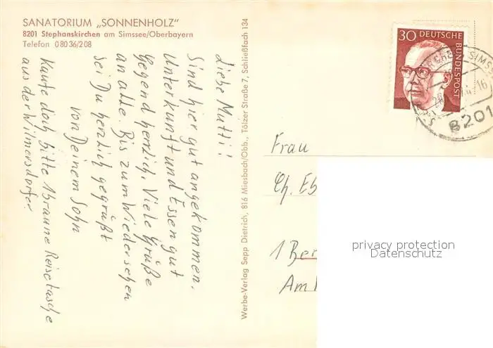 Stephanskirchen_Simssee Sanatorium Sonnenholz Stephanskirchen Simssee postalisch gelaufen 1974 Erhaltung siehe scans [WerneD78] WernPID7