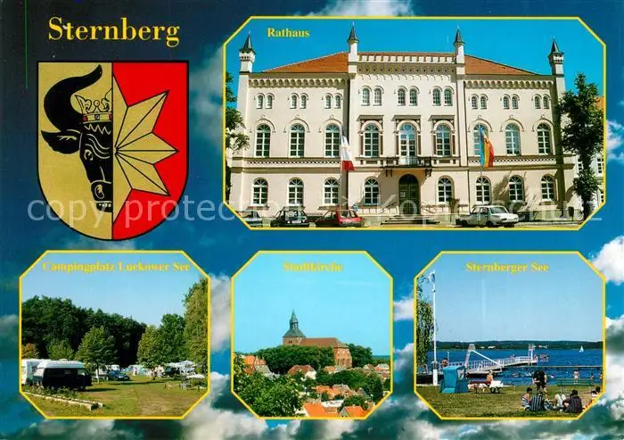 AK / Ansichtskarte Sternberg_Mecklenburg Rathaus Campingplatz Luckower See Stadtkirche Sternberger See Sternberg_Mecklenburg