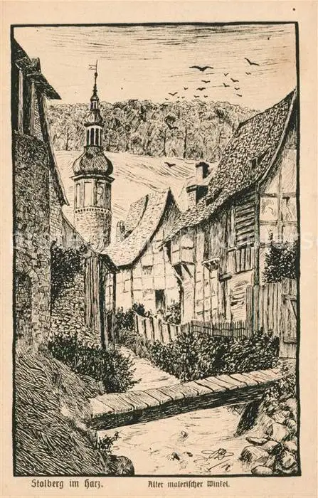 Stolberg_Harz Alter malerischer Winkel Federzeichnung Stolberg Harz postalisch nicht gelaufen 1921-1965 Erhaltung siehe scans [KathaD81] Kathoren