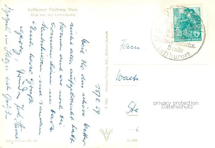 Stolberg_Harz Blick von der Lutherbuche Stolberg Harz postalisch gelaufen 1959 Erhaltung siehe scans [FriedD77] Frierer