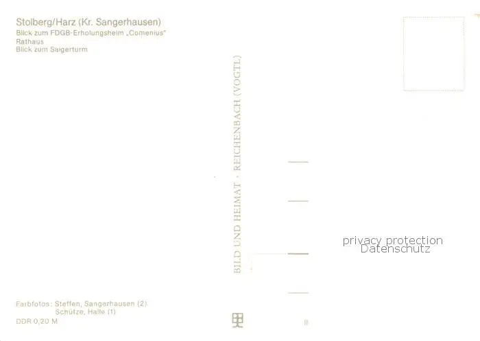 Stolberg_Harz FDGB Erholungsheim Comenius Rathaus Saigerturm Stolberg Harz postalisch nicht gelaufen nach 1965 Erhaltung siehe scans [WerneD78] WernPID7