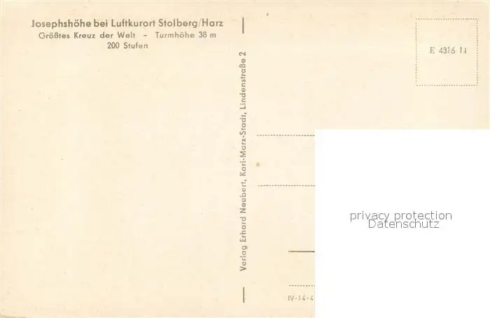 Stolberg_Harz Josephsh?he gr?sstes Kreuz der Welt Stolberg Harz postalisch nicht gelaufen 1921-1965 Erhaltung siehe scans [LiesaD40] LiesID40