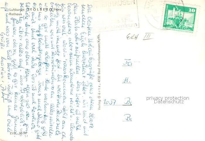 Stolberg_Harz Rathaus Stolberg Harz postalisch gelaufen nach 1965 Erhaltung siehe scans [WerneD78] WernPID7