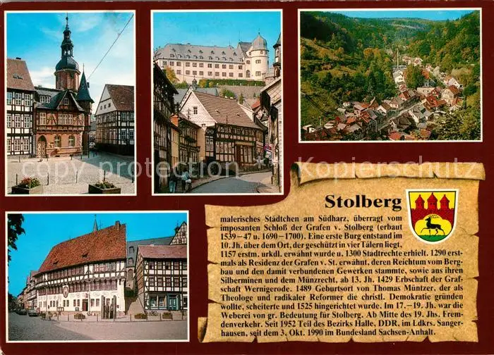 AK / Ansichtskarte Stolberg_Harz Saigerturm Marktplatz Hauptstr Schloss Teilansicht Nord Rathaus Stolberg Harz