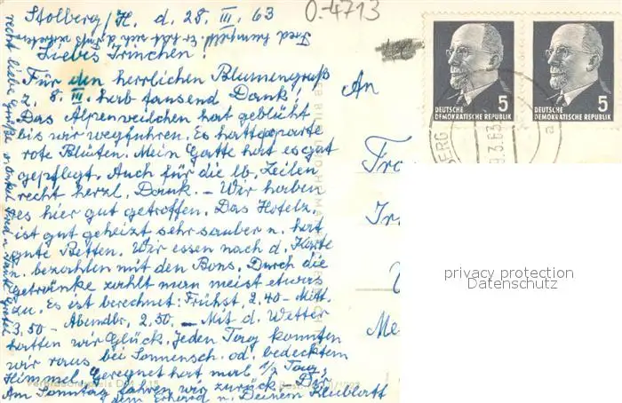 Stolberg_Harz Stadtpanorama Neustadtstrasse Josephshoehe Aussichtsturm Thomas Muentzer Heim Stolberg Harz postalisch gelaufen 1963 Erhaltung siehe scans [FriedD77] Frierer